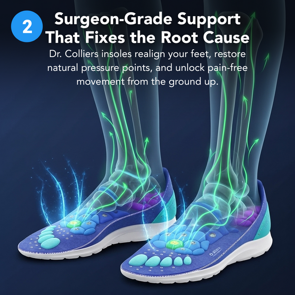 Say goodbye to sore feet, aching backs, and poor posture. Dr. Collier™ Insoles are designed with advanced magnetic therapy technology and ergonomic cushioning to support your entire body — starting from the ground up.